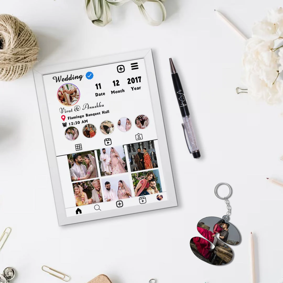 Instagram Profile Wedding Photo Frame, Pen & Keychain Gift Set